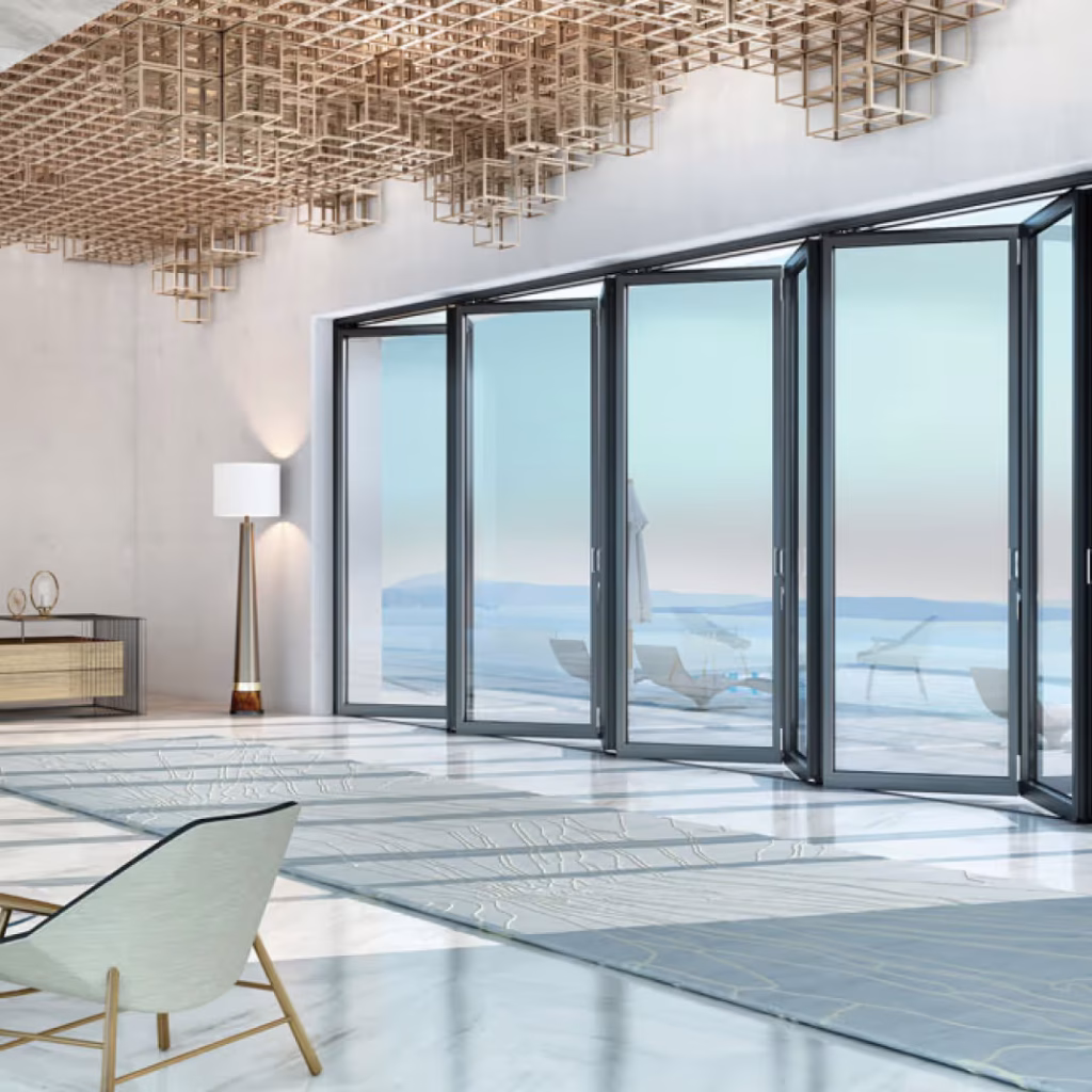 Stekleni harmonika sistemi omogočajo popolno odprtje stene brez fiksnih elementov, zato so idealni za terase, vrtove in gostinske lokale, ki želijo povezati notranji in zunanji prostor. Krila se enostavno zložijo na eno stran, kar omogoča maksimalen pretok zraka in svetlobe.